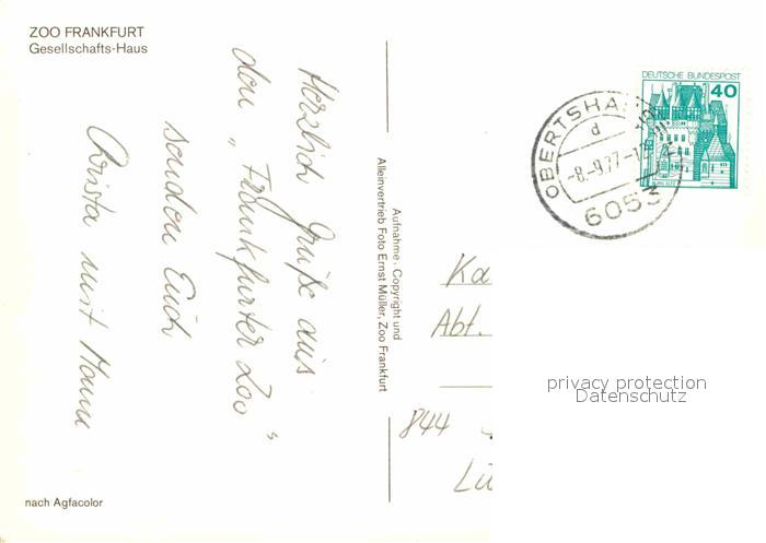 72724044 alte Postkarte Frankfurt Main Zoo Gesellschafts-Haus postalisch gelaufen Erhaltung siehe scans [LiesaD40] KatCode: 11110006412000
