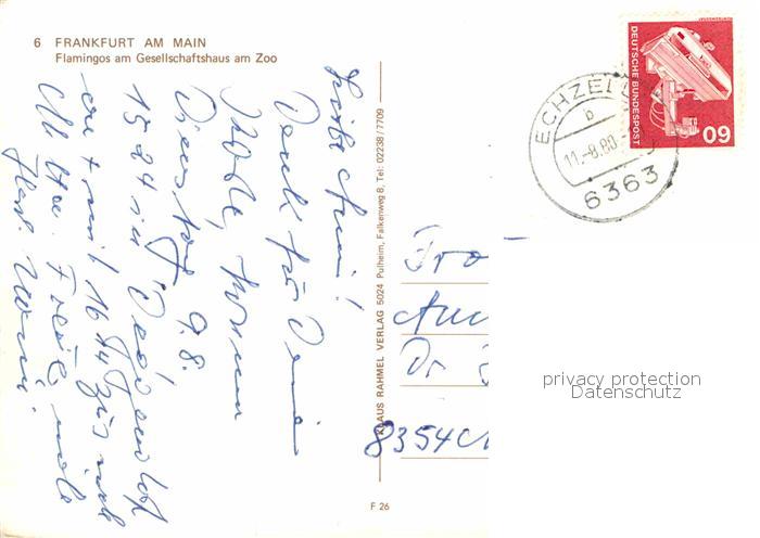 72667700 alte Postkarte Frankfurt Main Zoo Gesellschaftshaus Flamingos postalisch gelaufen Erhaltung siehe scans [AndreD76] KatCode: 11110006412000