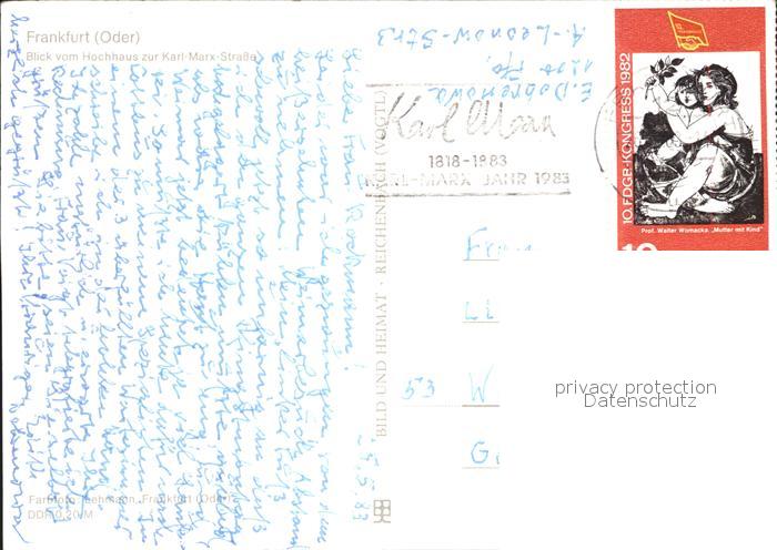 72248537 alte Postkarte Frankfurt Oder Blick vom Hochhaus zur Karl Marx Strasse postalisch gelaufen Erhaltung siehe scans KatCode: 11110012053000