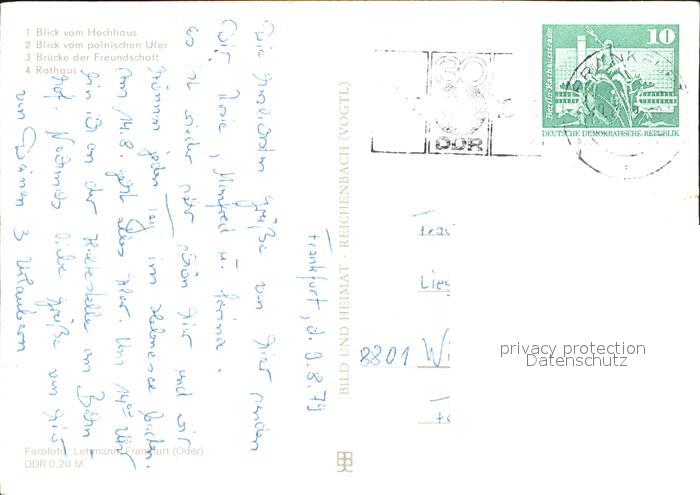 72566944 alte Postkarte Frankfurt Oder Bruecke der Freundschaft Blicke vom Hochhaus und vom polnischem Ufer postalisch gelaufen Erhaltung siehe scans [LiesaD40] KatCode: 11110012053000