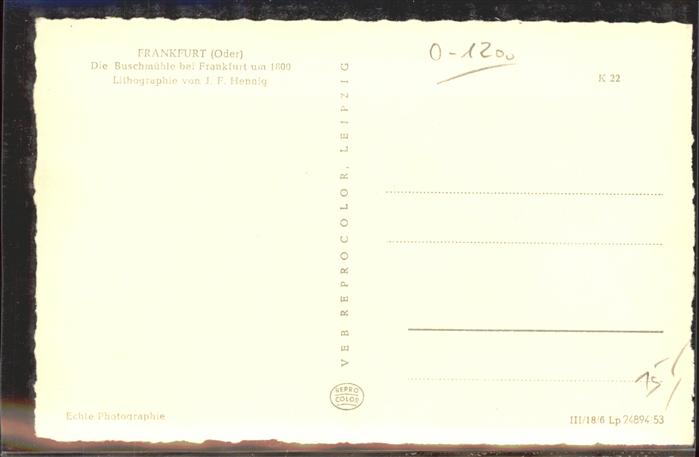 41400767 Frankfurt Oder Buschmühle um 1800 Lithographie J. F. Hennig KatCode 11110012053000
