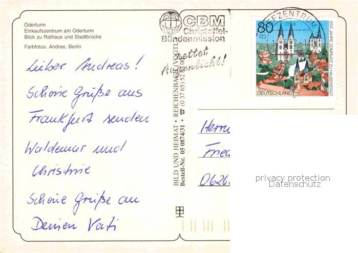 72639698 alte Postkarte Frankfurt Oder Einkaufszentrum am Oderturm Hochhaus Rathaus Stadtbruecke postalisch gelaufen Erhaltung siehe scans [FriedD77] KatCode: 11110012053000