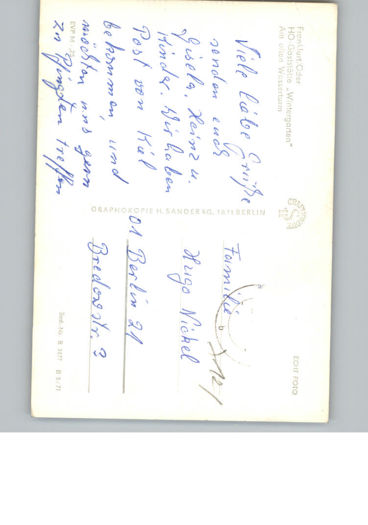 31176556 Frankfurt Oder Gaststaette Wintergarten postalisch nicht gelaufen KatCode: 11110012053000