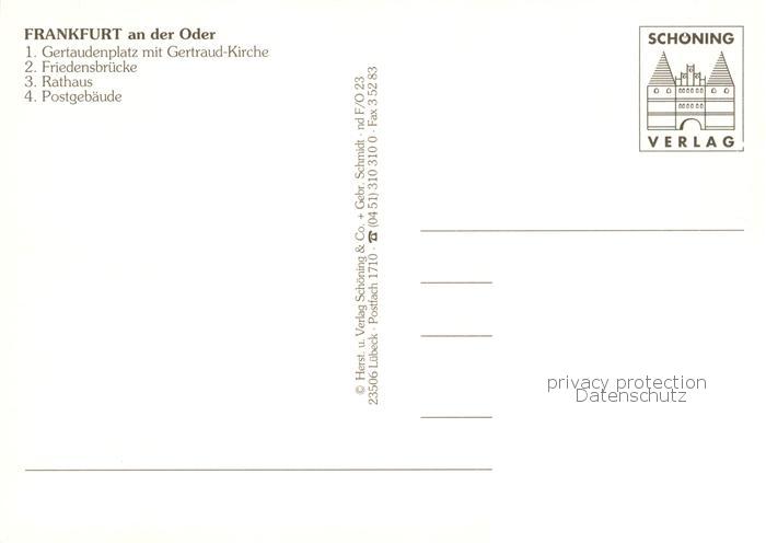 Frankfurt Oder Gertraudenplatz mit Gertraud Kirche Friedensbruecke Rathaus Postg