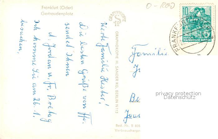 43352383 alte Postkarte Frankfurt Oder Gertraudenplatz postalisch gelaufen Erhaltung siehe scans [WerneD78] KatCode: 11110012053000