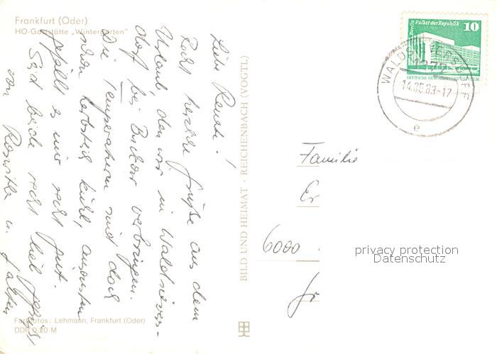 73570080 alte Postkarte Frankfurt Oder HO Gaststaette Wintergarten postalisch gelaufen Erhaltung siehe scans [FriedD77] KatCode: 11110012053000