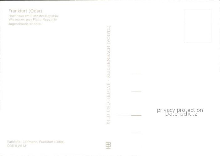 72573215 Frankfurt Oder Hochhaus am Platz der Republick Jugendtouristenhotel postalisch nicht gelaufen Erhaltung siehe scans [AndreD76] KatCode: 11110012053000