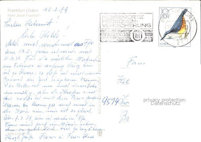 alte Postkarte Frankfurt Oder Hotel Stadt Frankfurt postalisch gelaufen Erhaltung siehe scans