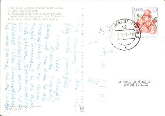 72337027 alte Postkarte Frankfurt Oder Karl Marx Denkmal Hotel Stadt Frankfurt Neubauten Otto Grotewohl Strasse Karl Marx Strasse postalisch gelaufen Erhaltung siehe scans KatCode: 11110012053000