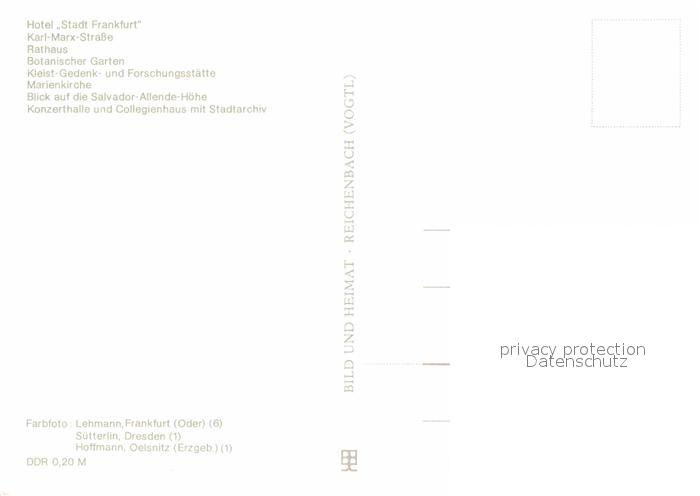 72617134 Frankfurt Oder Karl Marx Str Rathaus Botanischer Garten Kleist Gedenkstaette Marienkirche Salvador Allende Hoehe Konzerthalle postalisch nicht gelaufen Erhaltung siehe scans [WerneD78] KatCode: 11110012053000