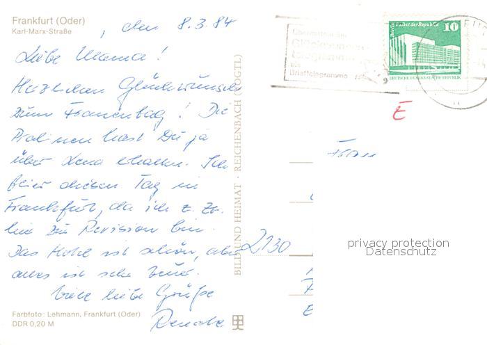 73142287 alte Postkarte Frankfurt Oder Karl Marx Strasse postalisch gelaufen Erhaltung siehe scans [WerneD78] KatCode: 11110012053000