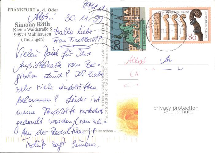 72333189 alte Postkarte Frankfurt Oder Kleisthaus Marienkirche Uferpromenade Bruecke Rathaus postalisch gelaufen Erhaltung siehe scans KatCode: 11110012053000