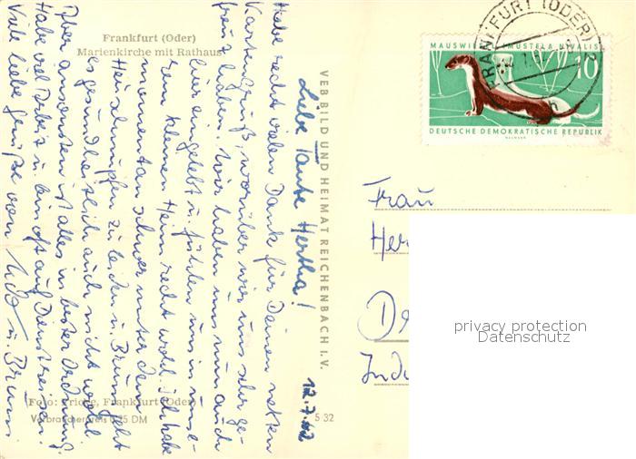 73271514 alte Postkarte Frankfurt Oder Marienkirche mit Rathaus postalisch gelaufen Erhaltung siehe scans [FriedD77] KatCode: 11110012053000