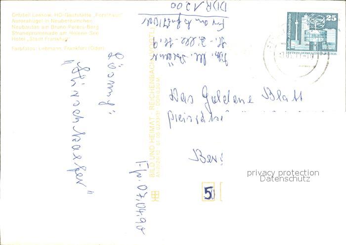 72372407 alte Postkarte Frankfurt Oder OT Lossow HO Gaststaette Aurorahuegel Neuberesinchen Naubauten Bruno Peters Berg Strandpromenade Helenesee Hotel Stadt Frankfurt postalisch gelaufen Erhaltung siehe scans KatCode: 11110012053000
