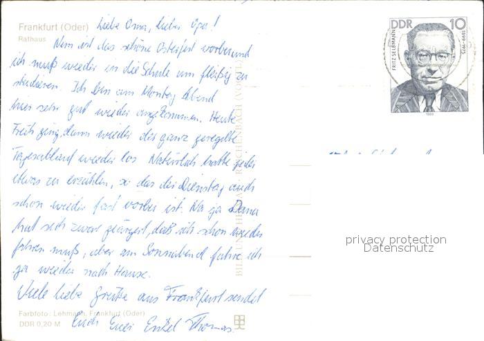 72315074 alte Postkarte Frankfurt Oder Rathaus postalisch gelaufen Erhaltung siehe scans KatCode: 11110012053000