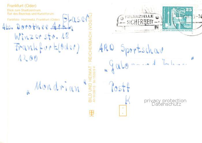 73873892 alte Postkarte Frankfurt Oder Stadtzentrum Rat des Bezirkes und Kunstforum postalisch gelaufen Erhaltung siehe scans [WerneD78] KatCode: 11110012053000