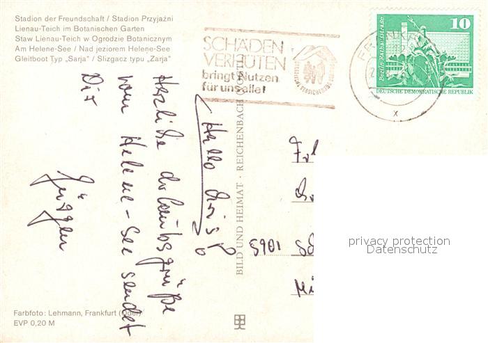 73062299 alte Postkarte Frankfurt Oder Station der Freundschaft Lienauteich Botanischer Garten Helenesee Gleitboot Typ Sarja postalisch gelaufen Erhaltung siehe scans [FriedD77] KatCode: 11110012053000
