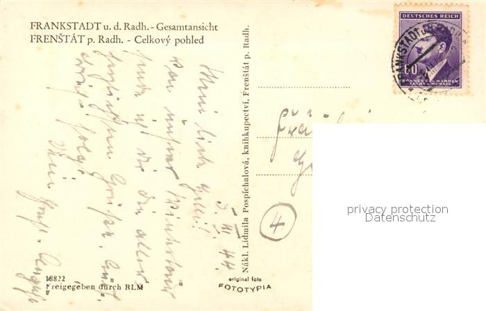 13219242 old postcard Frankstadt postalisch gelaufen Erhaltung siehe scans [PaolaD17] KatCode: 11520