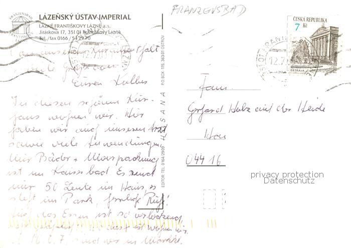 old postcard Frantiskovy Lazne Franzensbad Boehmen CZ Lazensky Ustav Imperial Terrasse Speisesaal Bar postalisch gelaufen Erhaltung siehe scans [WerneD78]