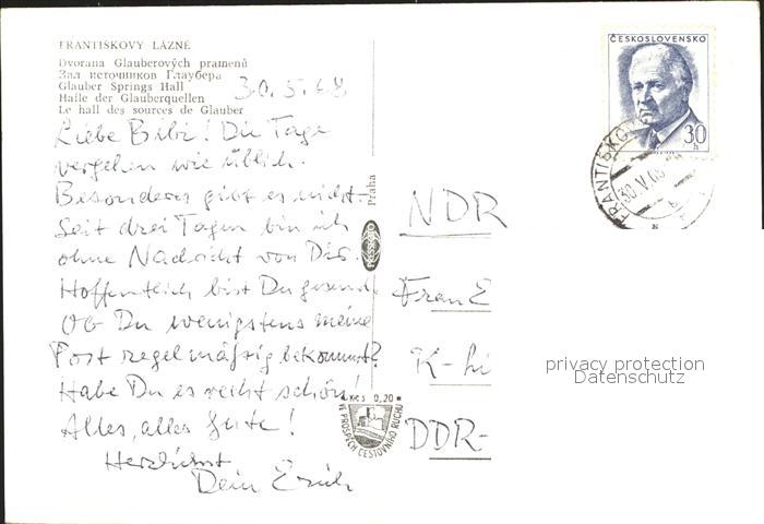 old postcard Frantiskovy Lazne Glauber Springs Hall postalisch gelaufen Erhaltung siehe scans
