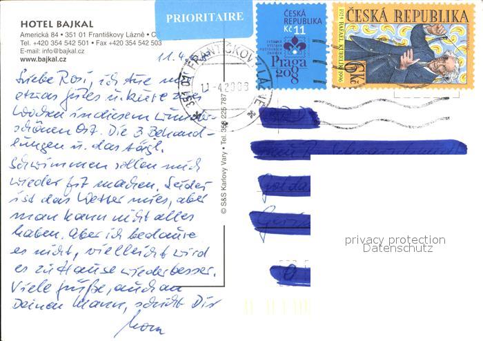 old postcard Frantiskovy Lazne Hotel Bajkal postalisch gelaufen Erhaltung siehe scans