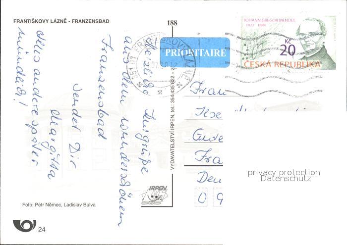 old postcard Frantiskovy Lazne Kuranlagen postalisch gelaufen Erhaltung siehe scans