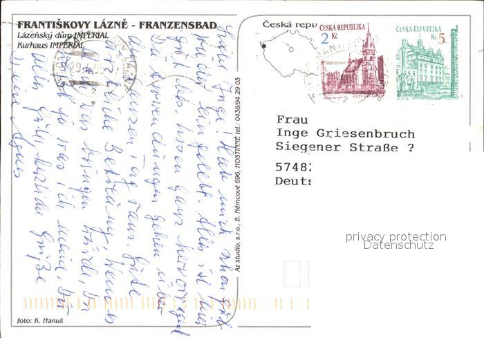 old postcard Frantiskovy Lazne Kurhaus Imperial postalisch gelaufen Erhaltung siehe scans [LiesaD40]