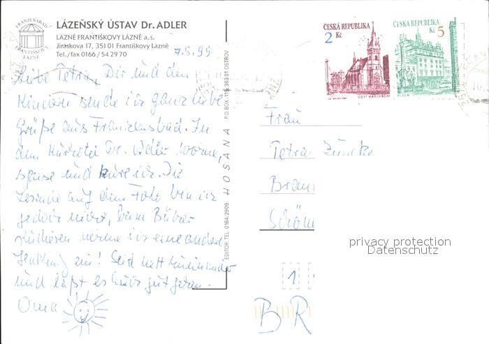 old postcard Frantiskovy Lazne Lasensky Ustav Dr. Adler postalisch gelaufen Erhaltung siehe scans