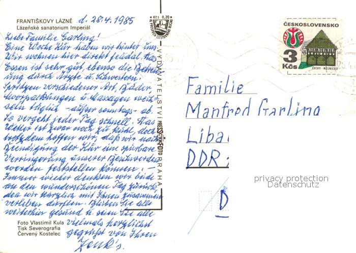 old postcard Frantiskovy Lazne Lazenske sanatorium Imperial postalisch gelaufen Erhaltung siehe scans [WerneD78]