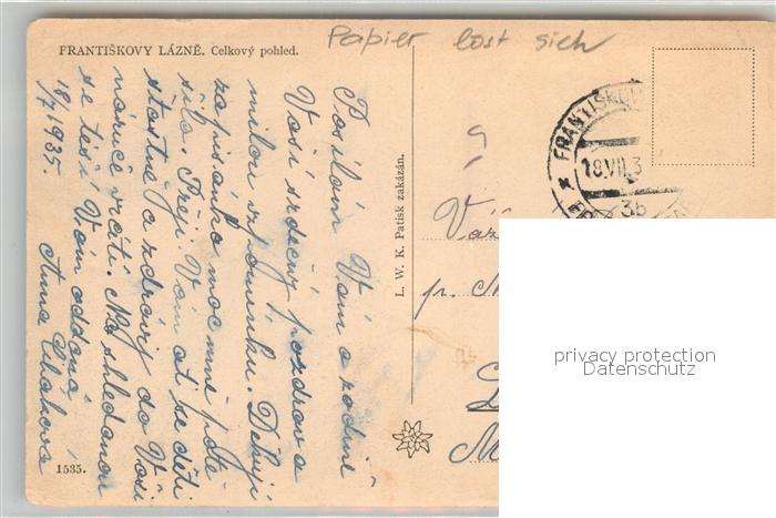 old postcard Frantiskovy Lazne Panorama Stadtansicht postalisch gelaufen Erhaltung siehe scans [KathaD81]