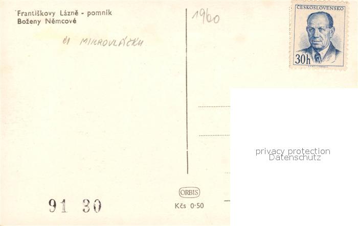 Frantiskovy Lazne Pomnik Bozeny Nemcove Denkmal Gedenktafel postalisch nicht gelaufen Erhaltung siehe scans [FriedD77]