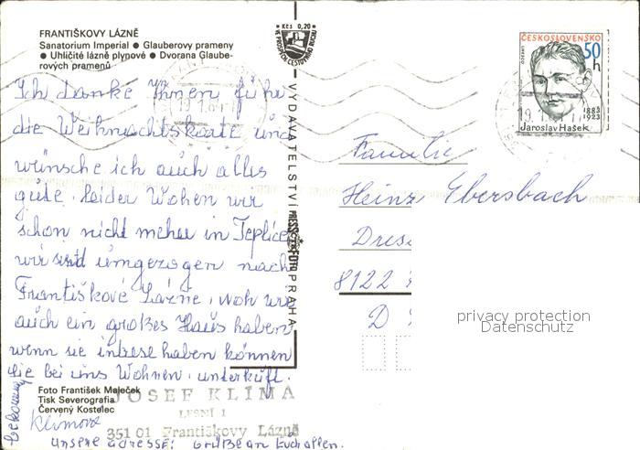 old postcard Frantiskovy Lazne Sanatorium Imperial Glauberovy prameny postalisch gelaufen Erhaltung siehe scans