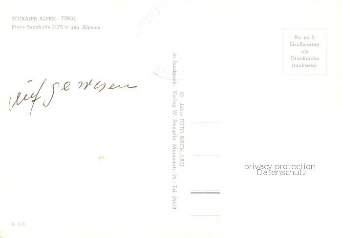 73322844 Franz Senn Huette Stubaier Alpen postalisch nicht gelaufen Erhaltung siehe scans [PaolaD17] KatCode: 11390332070334