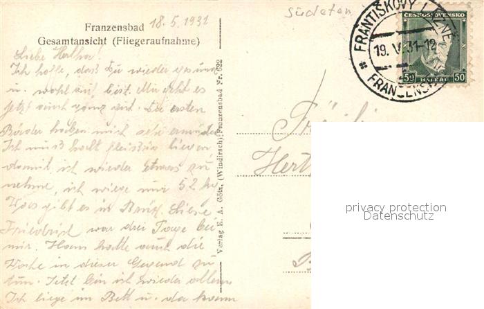 old postcard Franzensbad Boehmen Fliegeraufnahme postalisch gelaufen Erhaltung siehe scans [WerneD78]