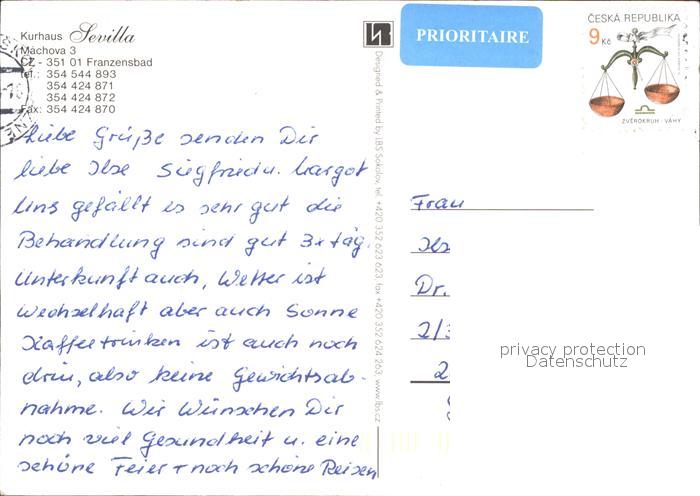 old postcard Franzensbad Boehmen Kurhaus Sevilla postalisch gelaufen Erhaltung siehe scans
