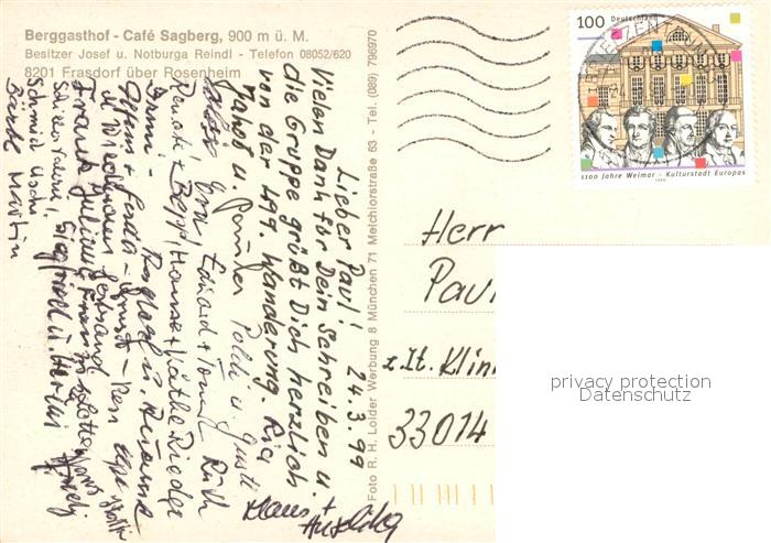 73686616 alte Postkarte Frasdorf Berggasthof Cafe Sagberg postalisch gelaufen Erhaltung siehe scans [WerneD78] KatCode: 11110009187132