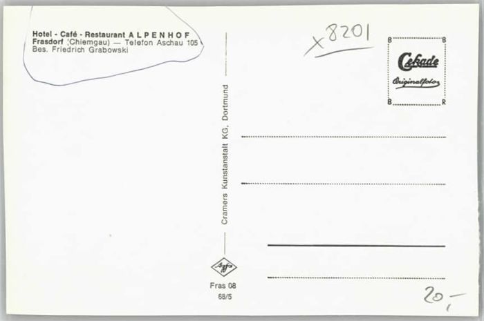 40208990 Frasdorf Hotel Cafe Alpenhof ungelaufen ca. 1955 KatCode 11110009187132