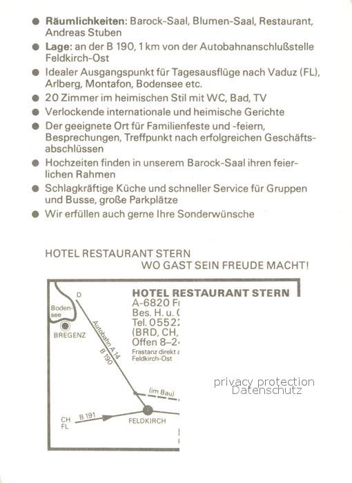 73560820 Frastanz Hotel Restaurant Stern postalisch nicht gelaufen Werbekarte (keine Postkarte) Erhaltung siehe scans [LiesaD40] KatCode: 11390342080405