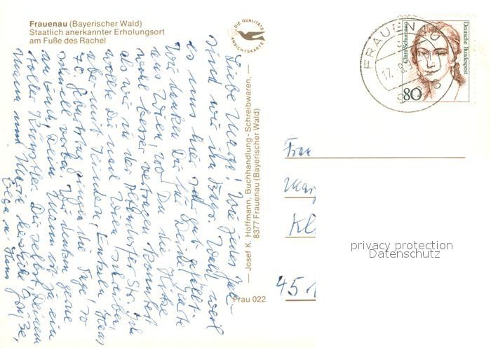 73667552 alte Postkarte Frauenau Erholungsort am Fusse des Rachel Bayerischer Wald Fliegeraufnahme postalisch gelaufen Erhaltung siehe scans [FriedD77] KatCode: 11110009276121