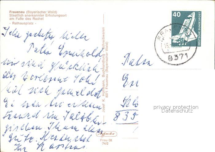 72591355 alte Postkarte Frauenau Rathausplatz Brunnen postalisch gelaufen Erhaltung siehe scans [WerneD78] KatCode: 11110009276121