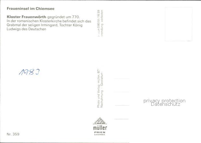 72413455 Frauenchiemsee Kloster Frauenwoerth postalisch nicht gelaufen Erhaltung siehe scans KatCode: 11110009187123