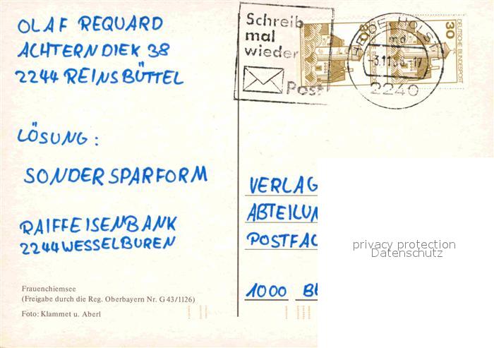 72835129 alte Postkarte Frauenchiemsee Kloster im Winter Fliegeraufnahme postalisch gelaufen Erhaltung siehe scans [FriedD77] KatCode: 11110009187123