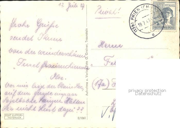 72476677 alte Postkarte Frauenchiemsee mit Hochfelln und Hochgern postalisch gelaufen Erhaltung siehe scans KatCode: 11110009187123