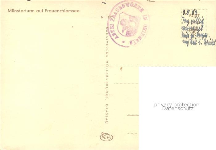 73071540 alte Postkarte Frauenchiemsee Muensterturm postalisch gelaufen Erhaltung siehe scans [WerneD78] KatCode: 11110009187123
