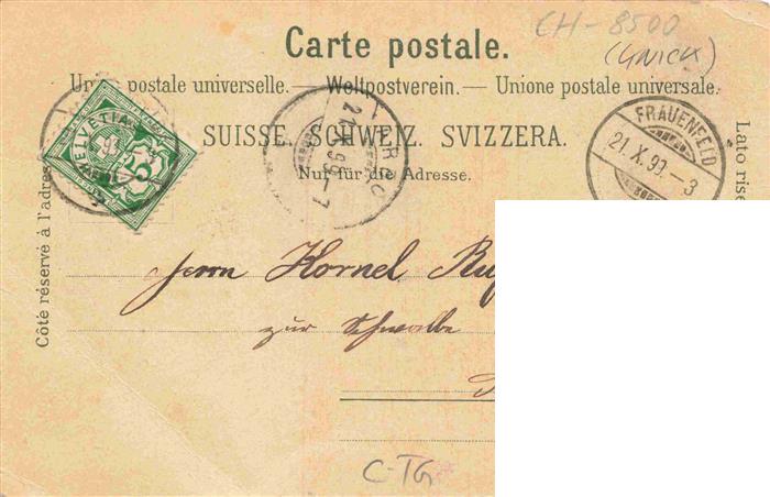 13974542 alte Postkarte FRAUENFELD TG Schloss im Mondschein Litho postalisch gelaufen Erhaltung siehe scans [FriedD77] KatCode: 11470200615064
