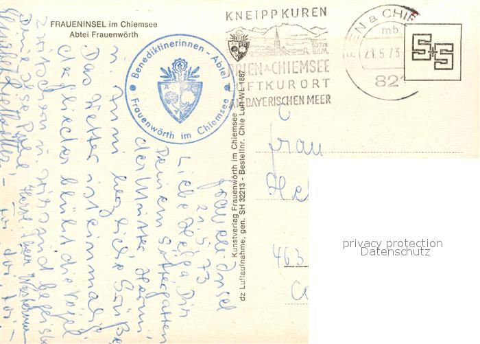 73171407 alte Postkarte Fraueninsel Chiemsee Abtei Frauenwoerth Kloster Fliegeraufnahme postalisch gelaufen Erhaltung siehe scans [FriedD77] KatCode: 11110009187123