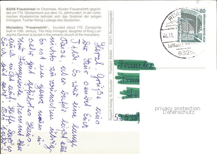 72452091 alte Postkarte Fraueninsel Chiemsee Fliegeraufnahme postalisch gelaufen Erhaltung siehe scans KatCode: 11110009187123