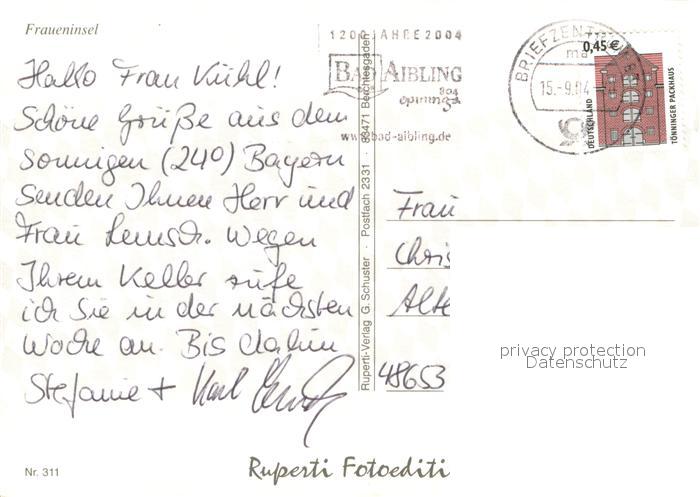 73616133 alte Postkarte Fraueninsel Chiemsee Fliegeraufnahme postalisch gelaufen Erhaltung siehe scans [WerneD78] KatCode: 11110009187123