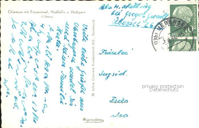 72513667 alte Postkarte Fraueninsel Chiemsee Fliegeraufnahme mit Hochfelln und Hochgern postalisch gelaufen Erhaltung siehe scans KatCode: 11110009187123