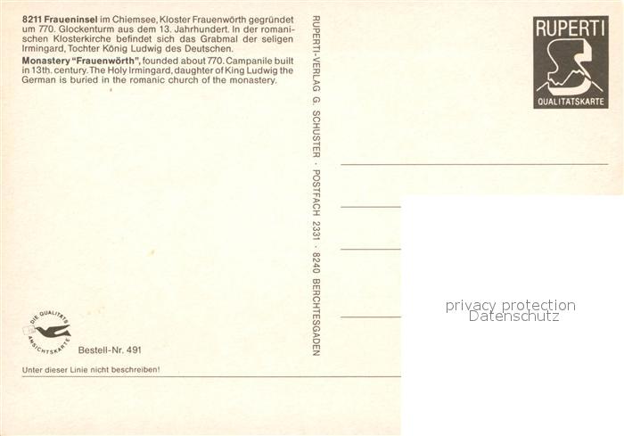 72962878 Fraueninsel Chiemsee Fliegeraufnahme mit Kloster Frauenwoerth postalisch nicht gelaufen Erhaltung siehe scans [WerneD78] KatCode: 11110009187123